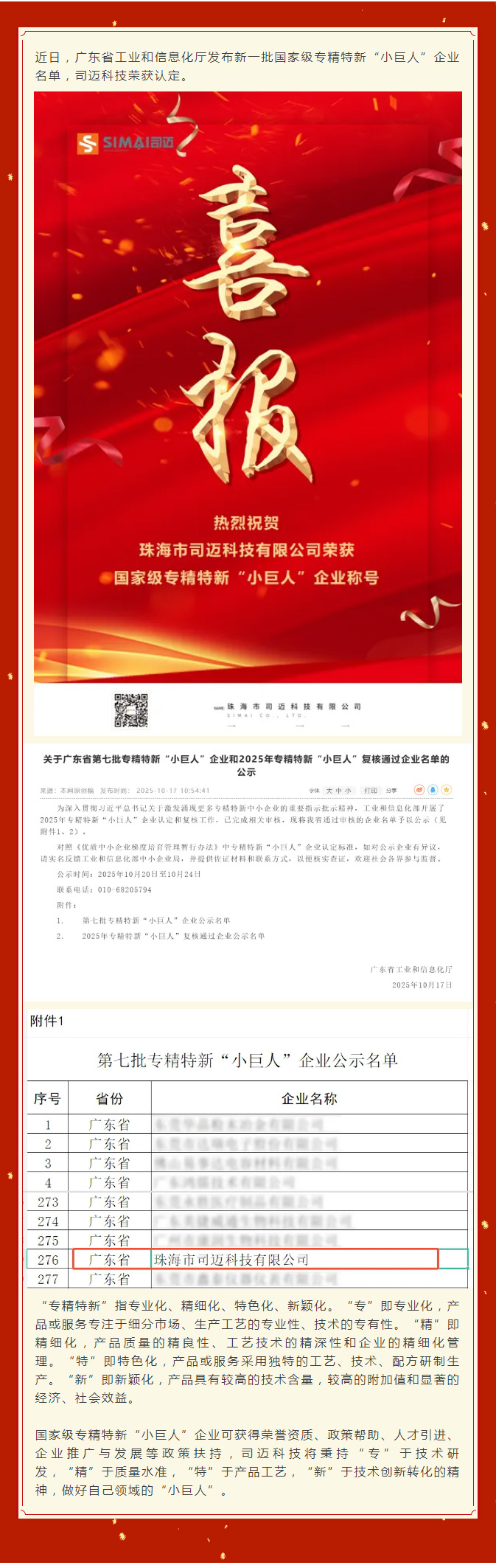 喜报 | 我司荣获国家级专精特新“小巨人”企业称号